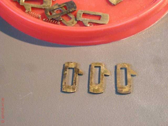 Con unas pinzas y con mucho cuidado procedemos a sacar las chapitas una por una. Hay que tener cuidado porque debajo de cada una de ellas hay un muelle diminuto que también tiende a esfumarse.